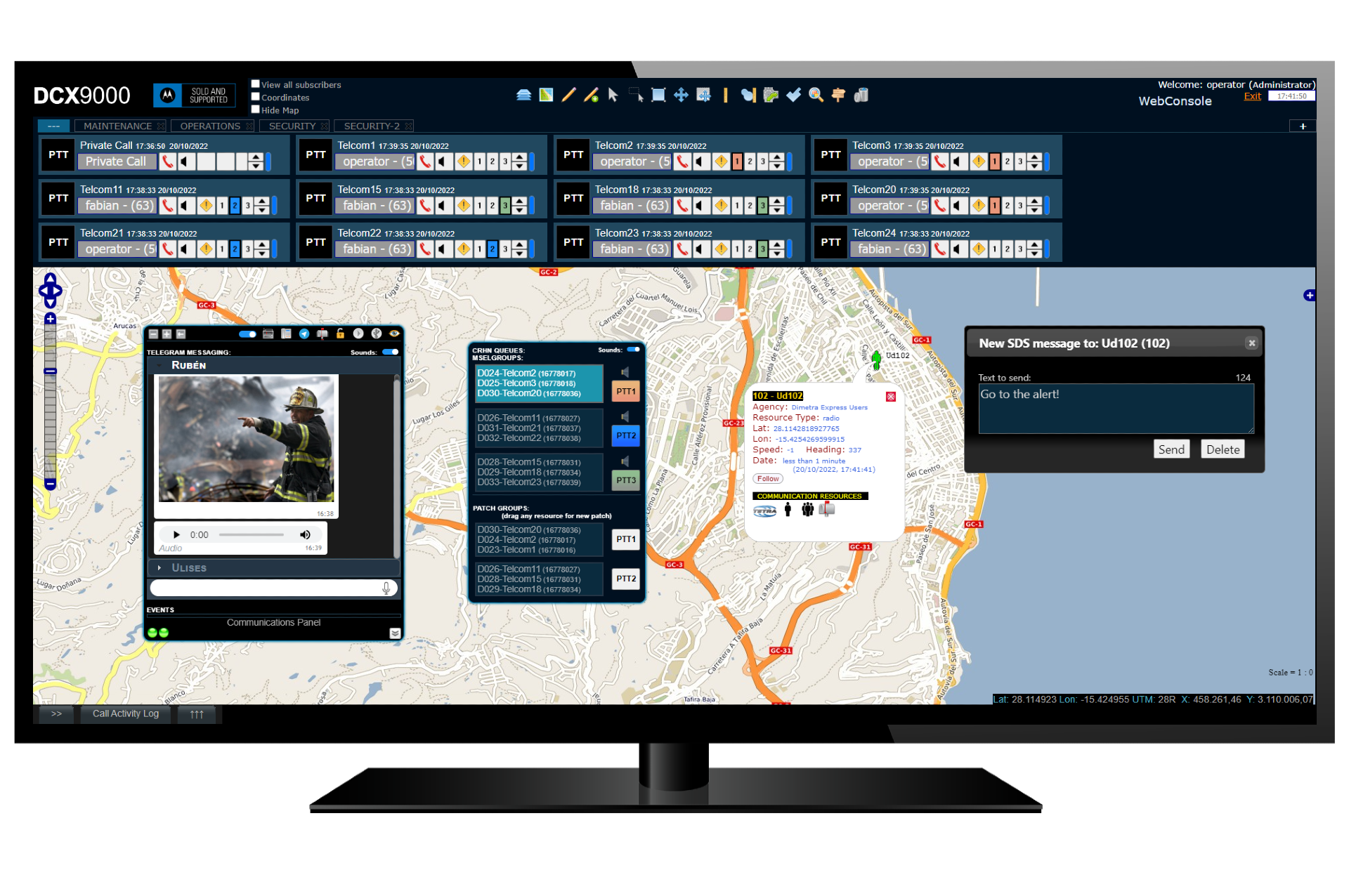 La nuova centrale operativa DCX9000 di Motorola Solution ti permette di comunicare in tutta sicurezza grazie all’integrazione All-In-One con i sistemi DIMETRA Express e offre un’esperienza di console dispatch avanzata, consentendo una connessione sicura ai team sul campo istantaneamente, da qualsiasi luogo. Il risultato? Un software di centrale operativa basato su browser che combina voce, testo, monitoraggio e registrazione, il tutto su un unico schermo.